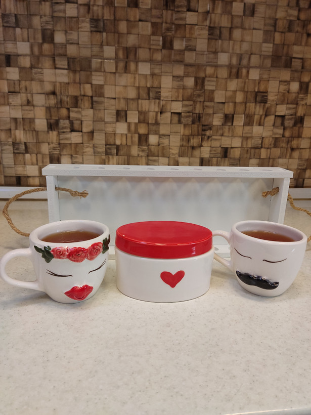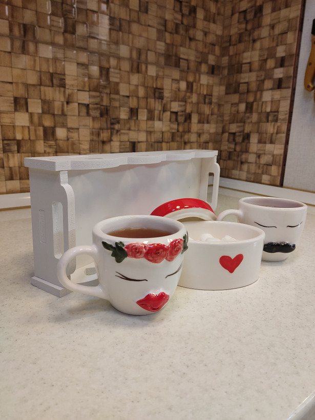 ست فنجان و قندان همراه با استند طرح عروس و داماد